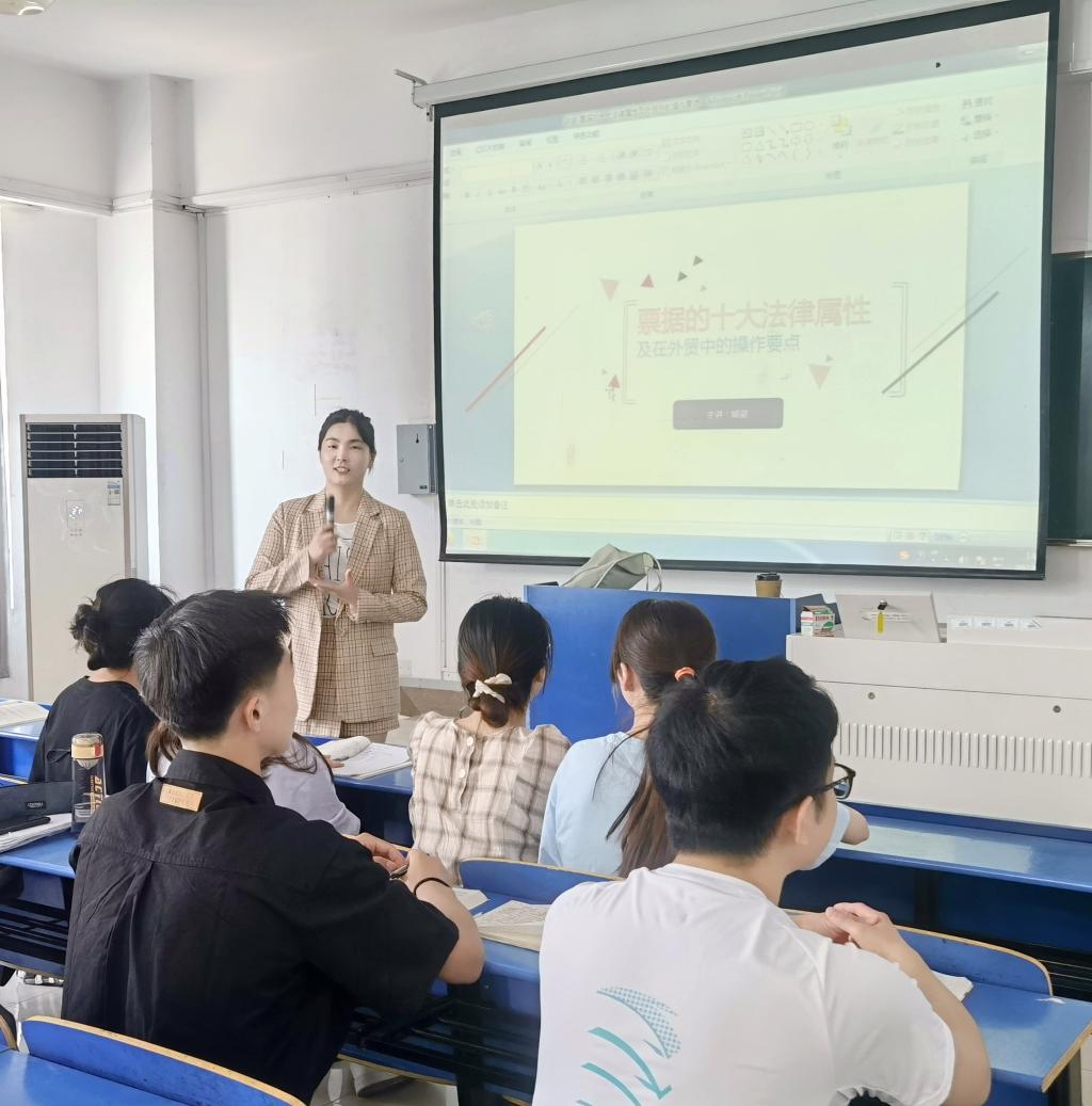 5月23日下午,永利集团304am登录讲师熊姿老师在锦绣校区逸夫楼A302教室举行了主题为“票据的十大法律属性及在外贸中的操作要点”的学术报告,2019级国际经济与贸易专业的学生到场聆听了报告。