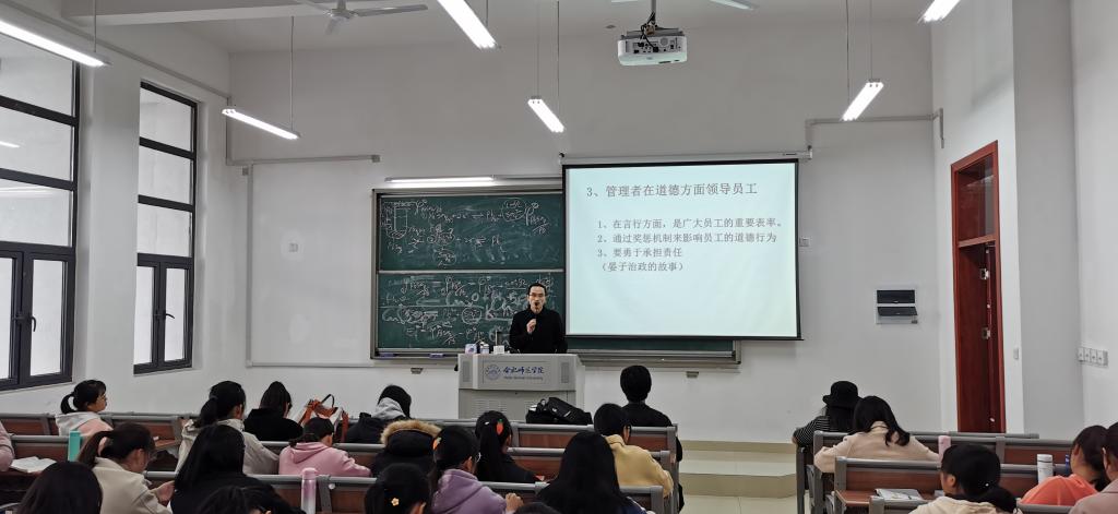 讲座内容贴近实际,讲解生动,师生之间互动频繁。通过本次讲座使同学们更加深刻地认识到企业不仅是一个经济实体同时也是一个伦理道德实体,在追求经济效益的同时应当积极承担自身的社会责任。