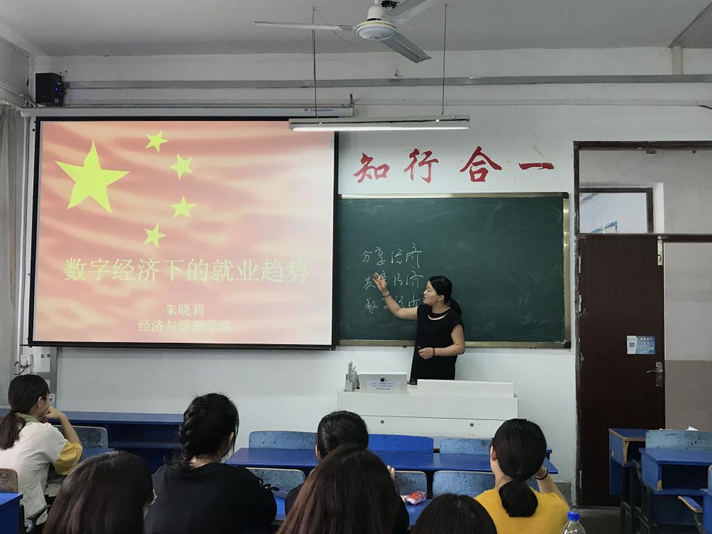 2019年9月23日上午,“行知讲堂”系列学术讲座在三孝口校区308教室举行。本次讲座由永利集团304am登录朱晓莉老师主讲,题目是“数字经济下的就业趋势”,来自2018级人力资源管理专业的学生聆听了讲座。
