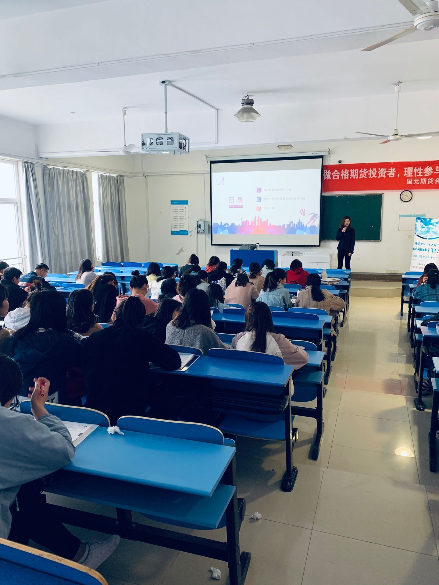 4月11日,由中国金融期货交易所、中国期货业协会主办,国元期货合肥营业部承办的第七届“中金所杯”全国大学生金融知识大赛宣讲会在锦绣校区逸夫楼402举行。永利集团304am登录部分专业的学生和老师聆听了此次讲座。