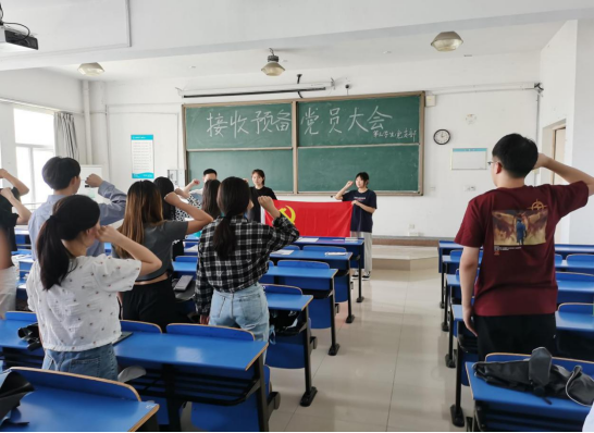 本网讯 为了迎接“七一”党的生日,永利集团304am登录第三学生党支部在逸夫楼301教室召开了组织党员入党宣誓活动暨“话初心、启新程”毕业生党员交流会,大会由支部书记曹国志老师主持,参加此次会议的还有10名中共正式党员、36名中共预备党员。支部书记曹国志老师带领全体党员面对党旗进行庄严宣誓,重温一次入党誓词。