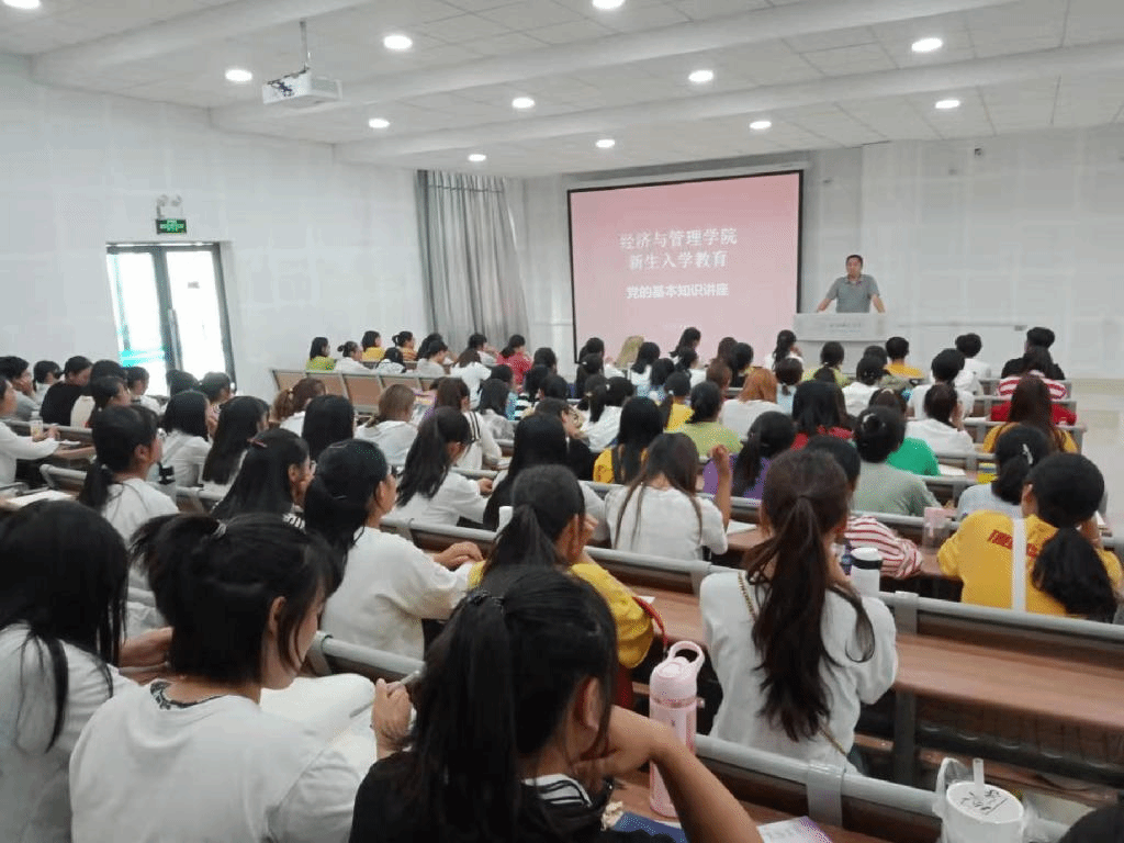 院党总支书记沈辉老师为2019级经管院新生上了新生入学教育第一课。他指出,大学时期,是播种理想、确立信念的黄金时期,是规划未来、设计人生的关键阶段。在宝贵的大学生活当中,应该有远大的理想、崇高的信念。沈辉老师向同学们介绍了党的历史、基本知识,使新生理解为什么要入党、了解党员的基本条件、入党的基本程序。沈辉书记指出,同学们“拥有梦想,志存高远”、“努力学习,立志成才”、“学会生活,学会做人”,用昂扬的斗志和饱满的精神,开辟和探索属于自己的大学生活。