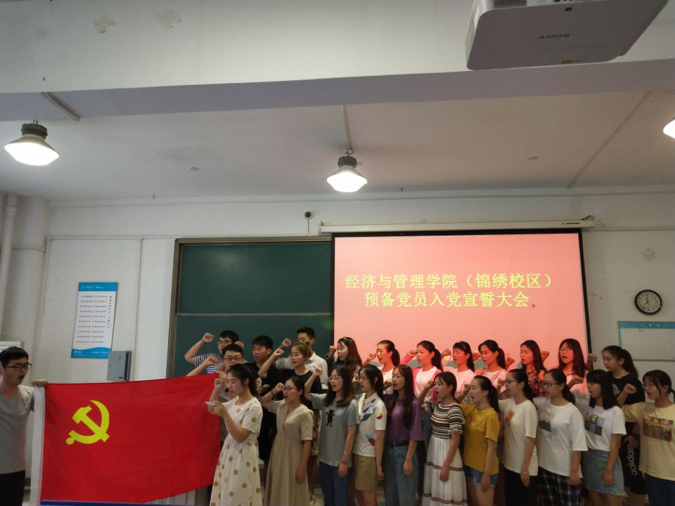 6月21日,永利集团304am登录锦绣校区预备党员入党宣誓大会在逸夫楼101顺利举行。院党总支副书记陶敏、锦绣校区学生党支部书记、本次发展的27名预备党员、正式党员代表和入党积极分子代表参加此次宣誓大会。