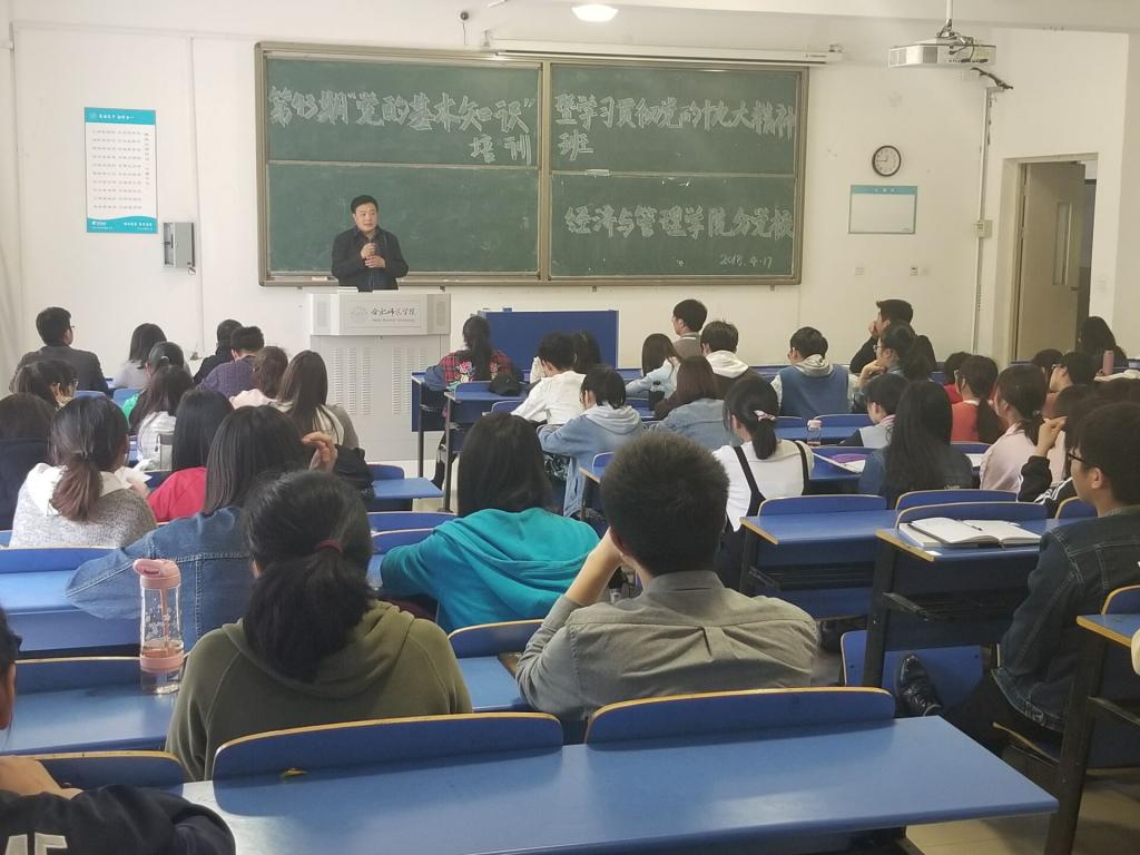 4月17日中午,永利集团304am登录分党校第43期“党的基本知识”暨学习贯彻党的十九大精神培训班开班典礼及第一次授课在逸夫教学楼A101教室隆重举行。永利集团304am登录党总支副书记葛浩、学生党支部书记、锦绣校区102名入党积极分子和发展对象参加本次开班典礼。