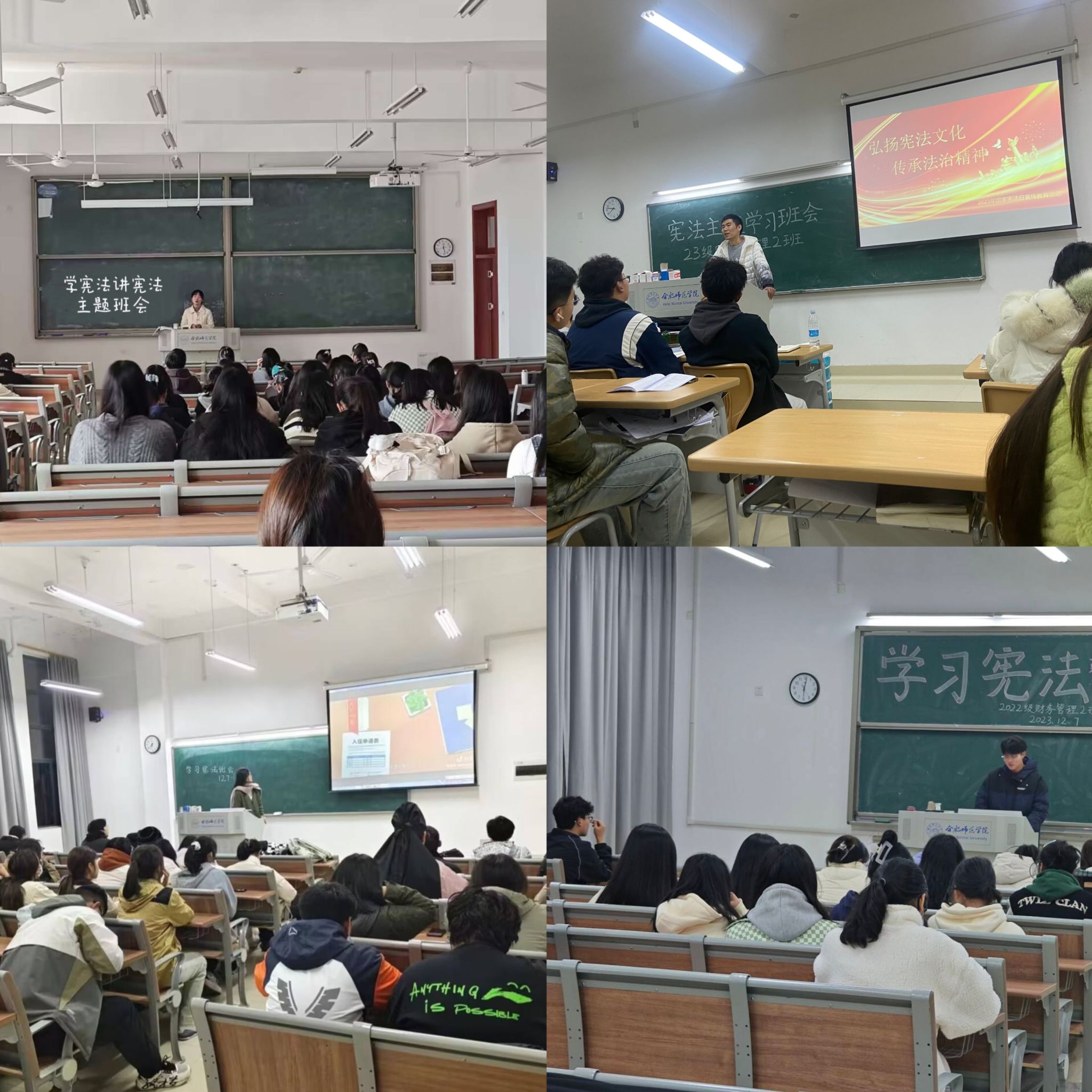 本网讯 今年12月4日是第十个国家宪法日,也是我国现行宪法公布施行四十一周年。2023年全国“宪法宣传周”宣传活动的主题为“大力弘扬宪法精神,建设社会主义法治文化”。为进一步增强大学生的法治意识和遵纪守法的自觉性,维护宪法权威。12月3-8日,永利集团304am登录各班级陆续开展“学宪法,讲宪法”主题班会。
