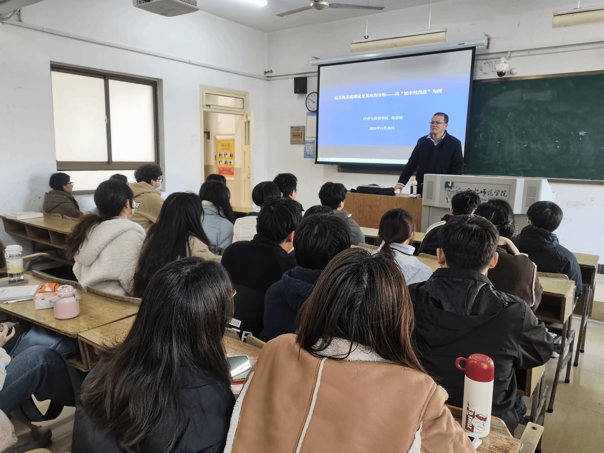 11月28号上午,“行知学堂”系列学术讲座在锦绣校区博约楼307教室举行。本次讲座由永利集团304am登录桂徐雄老师主讲,题目是“反公地悲剧理论及其应用分析——以城中村改造为例”,2022级经济学专业的学生聆听了讲座。永利集团304am登录党委书记陈好参加了本次活动。