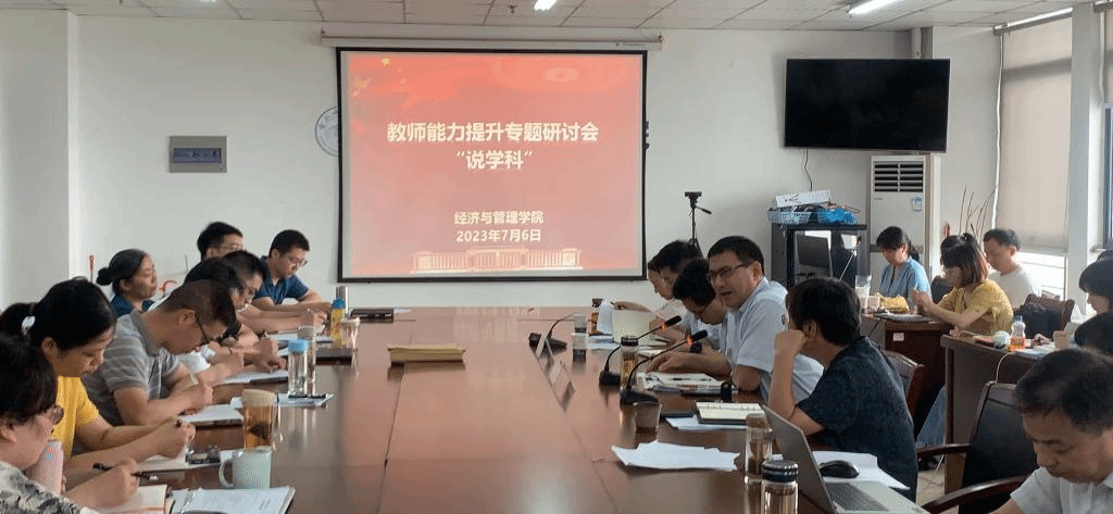之后,各专业科研团队负责人和学院教师进一步结合学科学位点带头人的汇报内容展开了交流研讨。陈蓉老师建议除科研团队建设外,还应加强教学团队、案例研究团队、师资培训和组织服务团队建设。蔡敏老师结合之前工作经历,从师资水平提升、学科交流、科研团队合作等方面提出建议,尤其指出应加强学院对外交流,通过举办科研会议等形式来提高学院知名度和影响力。杜俊娟老师建议加强课程团队建设来打造精品课程。桂徐雄老师则希望学院能提供一些数据库资源,以满足科研所需。其他老师也积极建言献策,畅所欲言。