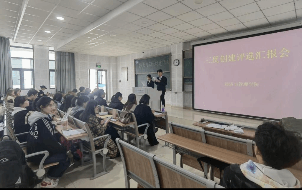 为贯彻落实“优美环境、优良秩序、优质服务”的三优建设工作,进一步提高学风建设水平,促进学生“自律、自强、自立”向上发展。2021年11月10日下午14:20,滨湖校区博学楼D101教室,我院开展了2021年“三优创建”优良学风班级和优良学风宿舍的评选活动。本次活动由经管院副书记陶敏和经管院张威、杜娇、马悦、蒋诗伟、王瑞瑞五位辅导员老师担任评委。参与本次评选会的还有经管院2019级、2020级及2021级的各班班委和寝室长代表。