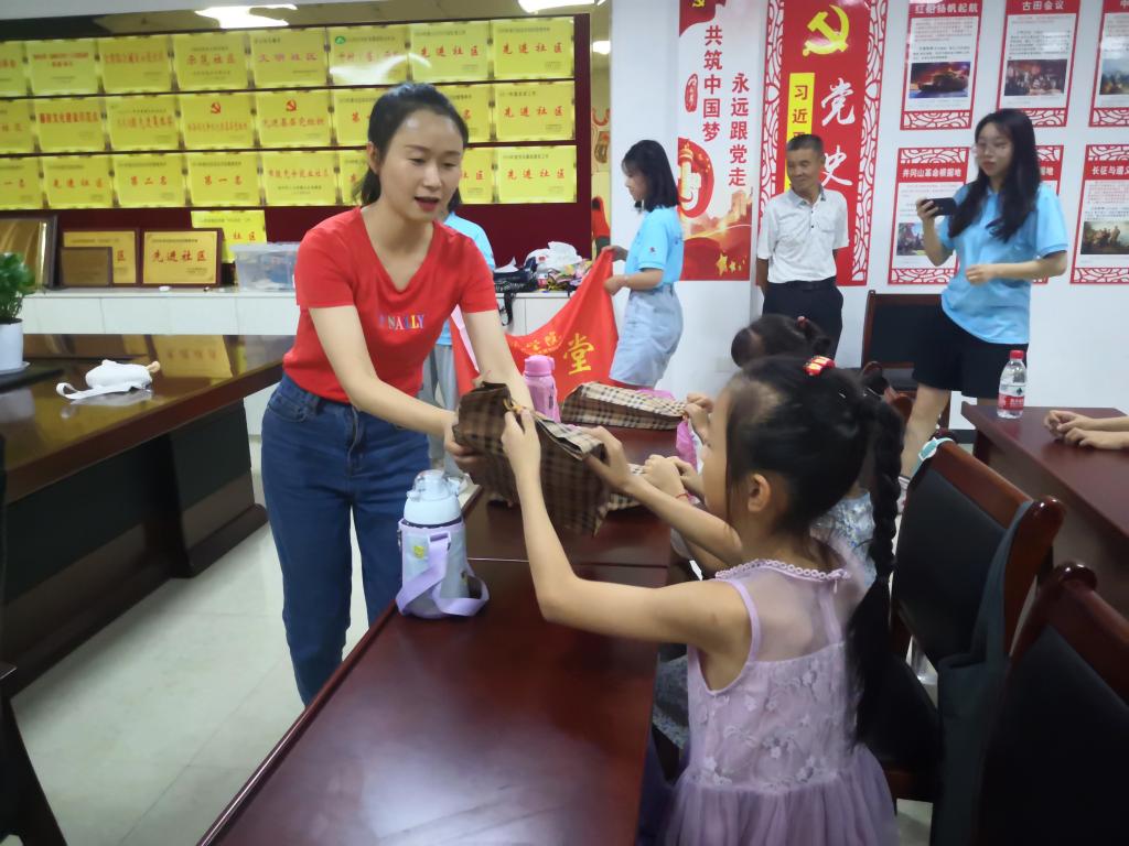 本网讯 8月6日,永利集团304am登录分团委负责老师赵燕冒着酷暑走进池州市东至县尧舜社区看望和慰问在这里开展“行知学堂”的小先生以及小学员们。