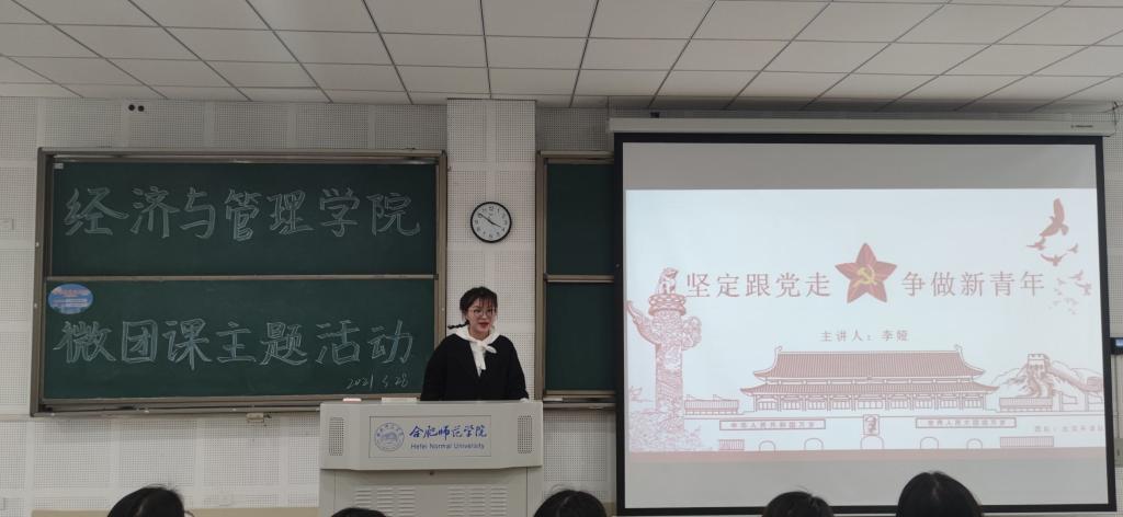 本次微团课大赛主题为“坚定跟党走,争做新青年”。比赛过程中,参赛同学们围绕着该主题灵活地运用ppt、视频等形式向我们展示了党的历史和共青团的相关知识,大家在良好的氛围中培养了集体荣誉感,认识、了解了百年来党的历史进程。最后,经过激烈的角逐,由19财务管理班邹悦和19市场营销班杨赛赛等同学组成的1921队夺得了一等奖。