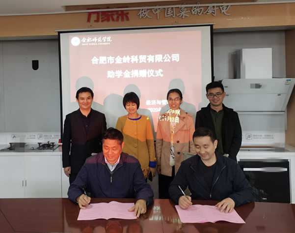 11月3日下午,在合肥金岭科贸有限公司,永利集团304am登录经管学院与合肥金岭科贸有限公司举行了“金岭科贸助学金捐赠仪式”。金岭科贸有限公司总经理姜勇,副总经理、经管学院2008届校友史月娥,经管学院党委书记沈辉,发展规划处(校友办)副处长、校友会秘书长樊彩萍,经管学院教师李志东、辅导员谷跃东出席了捐赠仪式。