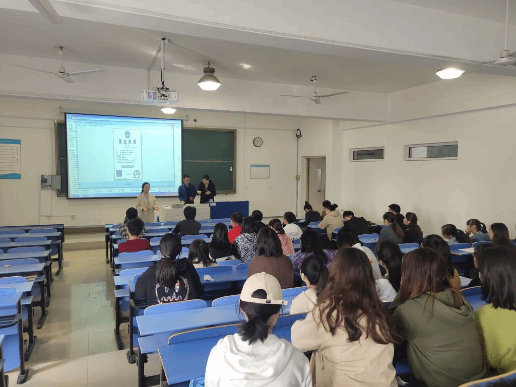 招聘会上,两家公司结合宣传单页和PPT,介绍了公司的企业文化、企业理念、集团概况和产业方向等相关信息,并向同学们讲解了有关企业人才培养计划和工资待遇等情况。