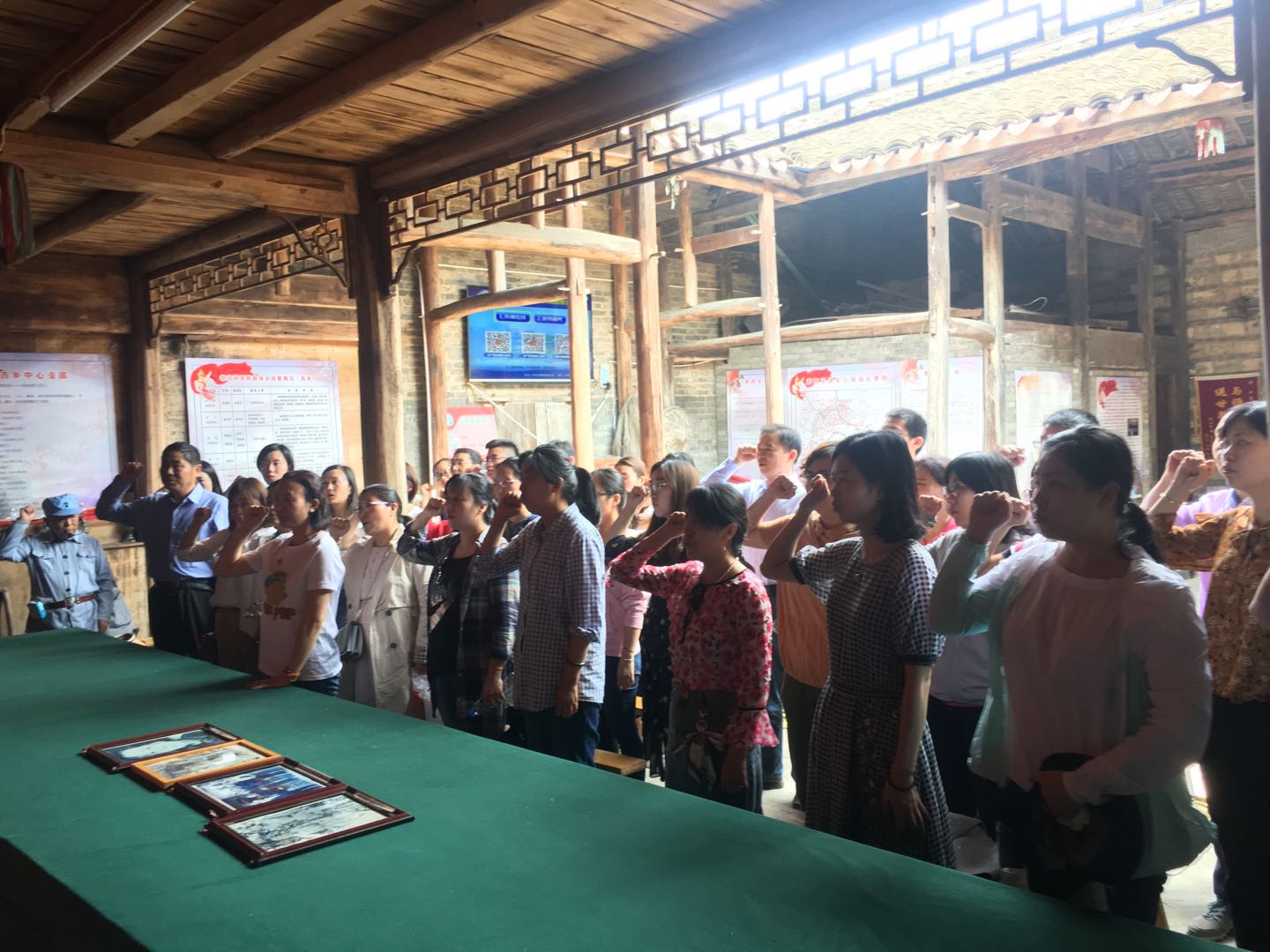 学习过程中,党员们认真聆听了新四军第三支队的有关历史、繁昌保卫战五次战斗的经过、以及谭震林将军率领新四军三支队战斗在皖南前线与敌人斗争的光辉历史。看到一幅幅珍贵的历史照片、听到一幕幕感人的革命场景,参加活动的每一位党员仿佛回到了艰苦卓绝的峥嵘岁月。全体党员还面对党旗,举起右手,重温了入党誓词。