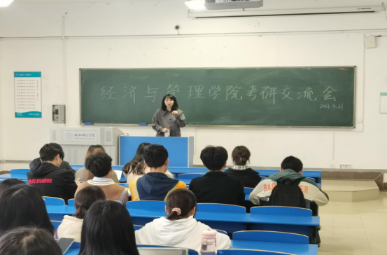 在交流会上,主持人首先对其进行了简单的介绍,并对他们的到来表示热烈地欢迎。之后,五位同学分别介绍了他们在考研的过程中的学习方法、技巧以及一些考验中自己遇到的问题。