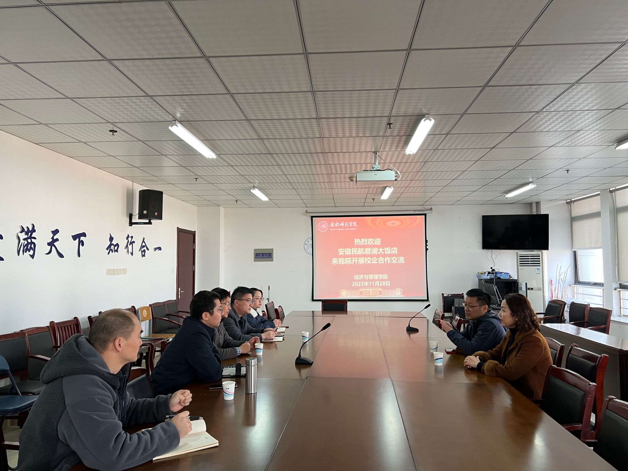 为进一步推动毕业生实习就业,搭建校企合作平台,推动产学研深度合作,11月28日下午,安徽民航君澜大饭店人资部总监汤洪波、人资部高金霞一行2人来院开展校企合作交流,学校就业创业工作处(创业学院)处长李健、学院党委书记陈好、副院长钟玉文、毕业班辅导员参加本次会议。