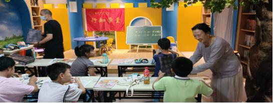 本网讯 7月12日下午,永利集团304am登录党委书记沈辉,副书记陶敏在院分团委书记赵燕,学堂指导老师蒋诗伟的陪同下,来到合肥市蜀山区玫瑰园森林书屋看望行知学堂的小先生和小学员们。