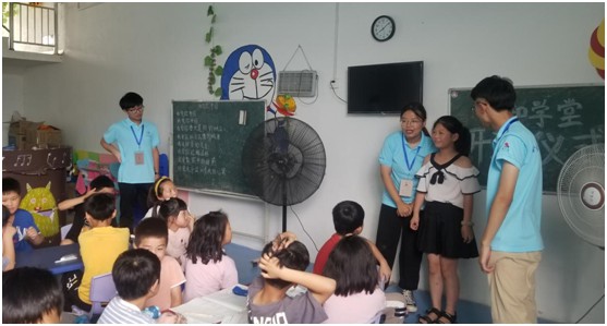 学堂开班初期,教学条件相对缺乏,仅两个台扇,一台电视机,狭小的空间支撑了小学员和小先生的知识桥梁,炎炎夏日的汗水随着诵读声一挥而散。小先生结合自身的专业知识,又不乏培养小学员的兴趣,教学期间,课堂氛围活跃,深受学生欢迎和家长青睐。