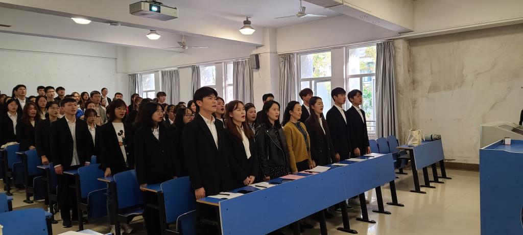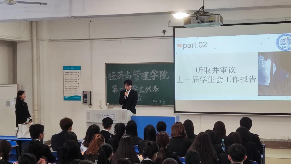 本网讯11月3日,永利集团304am登录第一次学生代表大会在锦绣校区逸夫楼109教室组织召开。永利集团304am登录党委副书记陶敏老师应邀出席,分团委书记赵燕、学院各年级团干、普通学生共九十名齐聚一堂,共同谋划全院学生自身发展的大事。