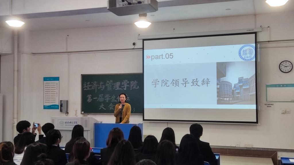 陶敏代表学院党委向大会的召开表示祝贺。她充分肯定了过去一年我院学生会在思想政治引领、服务同学成长成才、推进学校学风建设、加强自身改革等方面做出的努力和取得的成绩。她认为,一个时代有一个时代的使命,一代青年有一代青年的追求。她向广大青年学子提出三点希望:第一,坚定理想信念,自觉在社会事业发展中找到方向、第二,强化政治站位,自觉在党和国家的命运发展中站在统一战线;第三,勤奋刻苦学习,自觉在学校建设中明确自身定位;第四,创业创新创优,自觉在个人素养的全面发展中建功立业。她强调,国家的未来属于青年,民族的希望寄托在青年身上,广大同学要在矢志奋斗中谱写新时代的青春之歌。
