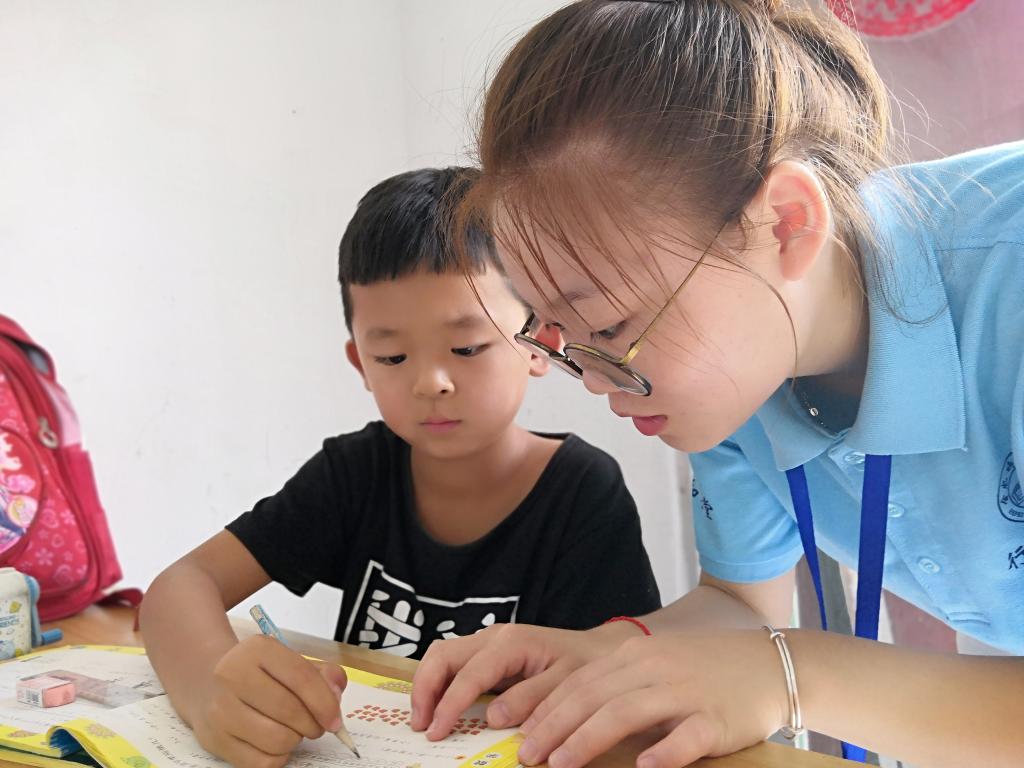 在教学的过程中,“小先生”也注重与小学员的沟通,加强他们情感间的交流。走进孩子们的世界,听听属于他们的缤纷世界,这也有利于孩子们的心理成长,让他们愿意敞开心扉去同他人交流。