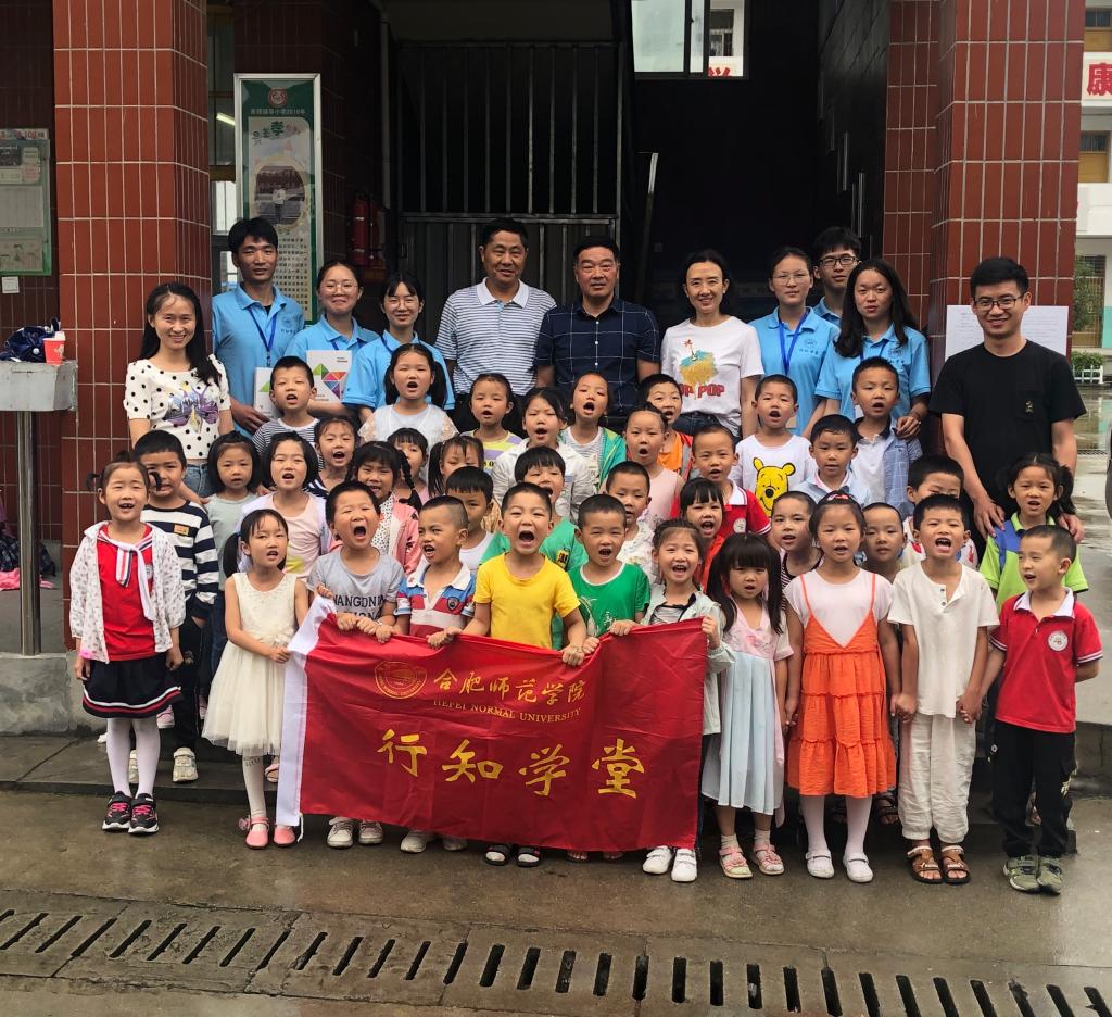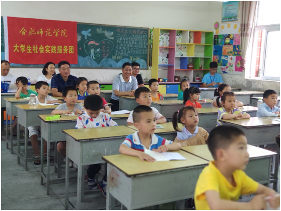 7月12日下午,永利集团304am登录党总支书记沈辉、副书记陶敏、分团委书记赵燕和“行知学堂”指导教师谷跃东驱车三个多小时来到岳西县来榜辅导小学看望正在这里开展“行知学堂”的小先生和小学员们。