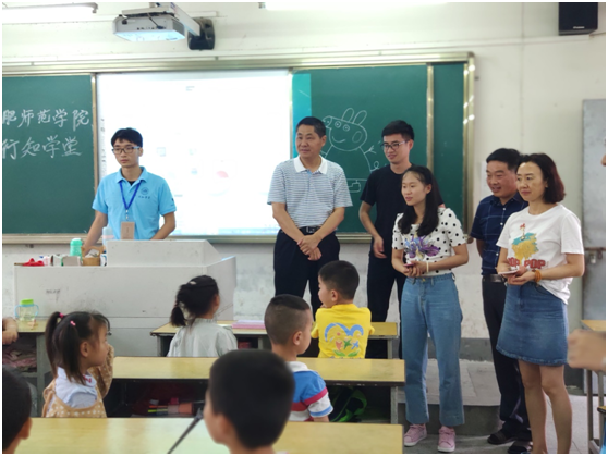 沈辉书记一行人的到来受到当地小学校长和老师孩子们的热烈欢迎。沈辉书记亲切地与小学员们交谈,询问他们的相关情况并向“小先生”们了解了行知学堂的选址、招生和课程安排等,对于小先生的积极参与、精心备课、团结协作给予高度认可,同时嘱咐他们要注意自身和小学员们的安全,随后,沈辉等人向小学员们赠送了学习用品,并合影留念。