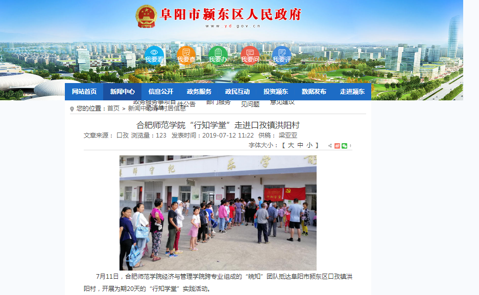 7月12日,阜阳市颍东区人民政府网对我院“皖知”行知学堂进行媒体报道。(永利集团304am登录)