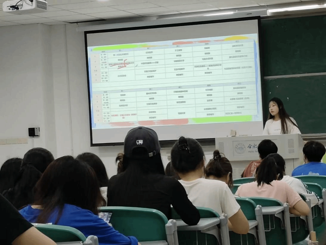 段海燕同学首先为大家详细介绍了行知学堂的基本情况,行知学堂开办时间最短为 15天,其中校级重点学堂开办时间不少于 21天,每天平均学时不低于 4 小时。如根据实际需要建设周期较长者可分批次组织开展。学堂统一标识为 “永利集团304am登录行知学堂”,小先生上课需穿戴统一服装,佩戴统一的工作证。其次为大家讲解行知学堂授课课时的基本规划,以及它所采取的课程模式,即课程采取 “3+X”模式,“3 ”即开设 “思想引领、行知文化、安全教育”三类主题必修课等等,最后她希望每位小先生都能承担起小先生这份责任。